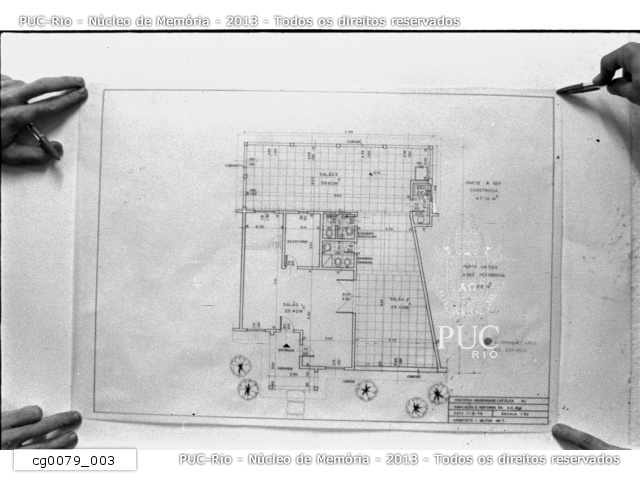 Diretoria analisando a planta baixa da AFPUC para as obras de reformas que não chegaram a ser realizadas. |