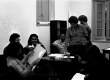Eleições para diretoria da Associação dos Funcionários da PUC-Rio. Pessoas na entrada da Associação. Pela primeira e única vez concorreram três chapas: Renovação, União e Novas ideias. |