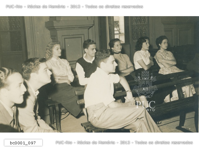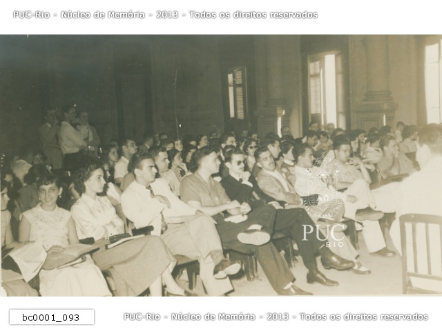 Plateia de palestra no auditório do Colégio Santo Inácio. Pode ser um júri simulado da Faculdade de Direito. |