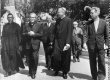 O Reitor Pe. Velloso S.J. com autoridades religiosas e militares no bosque da PUC-Rio, próximo a imagem da Nossa Senhora da Aparecida, provavelmente após a inauguração do busto do Padre Leonel Franca S.J.. |