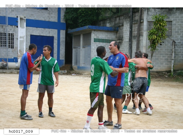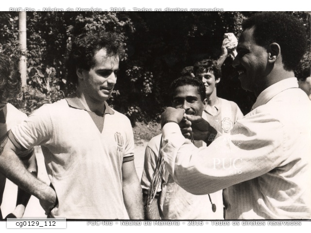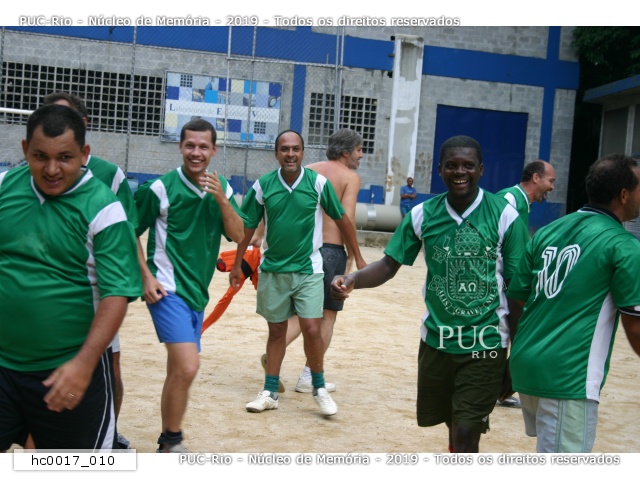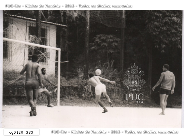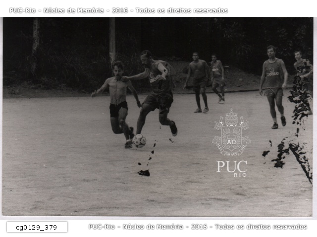 Jogo de futebol disputado entre os funcionários da PUC-Rio. |