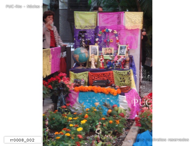 Montagem de objetos relacionados ao dia 2 de novembro, dia de Finados. |