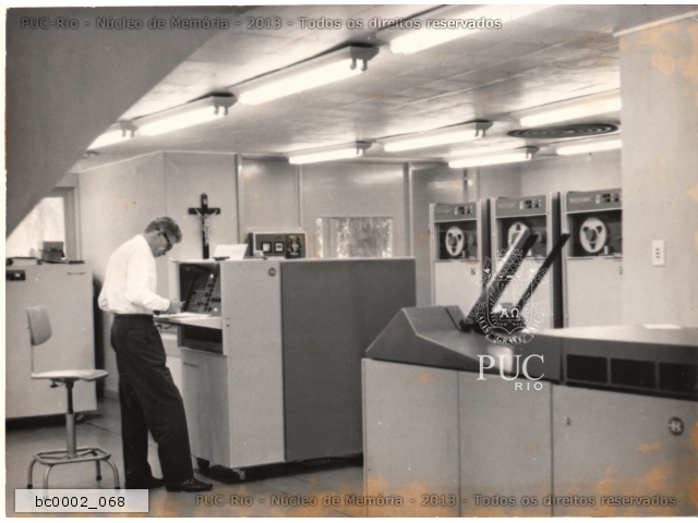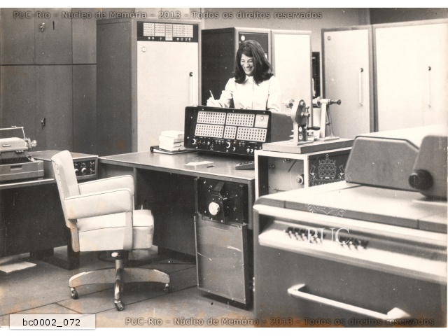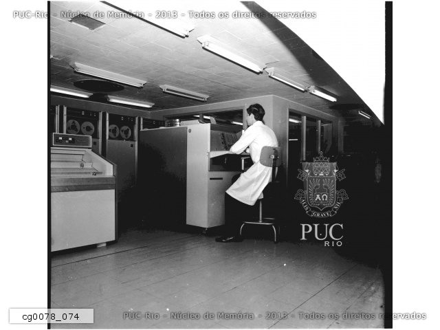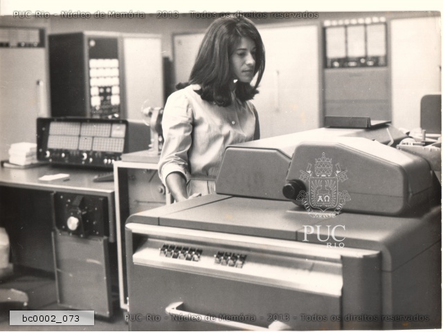 Computador Burroughs 205, o primeiro computador da PUC-Rio, conhecido como cérebro eletrônico e com memória de cerca de 16Kb. |