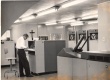 Pesquisador opera o computador Burroughs 205, em sala com impressora e leitoras de fita de papel e de cartões perfurados. |