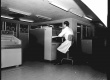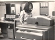 Pesquisadora na sala do Centro de Processamento de Dados com o Computador Burroughs 205. |