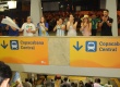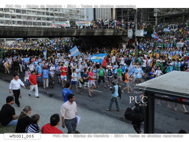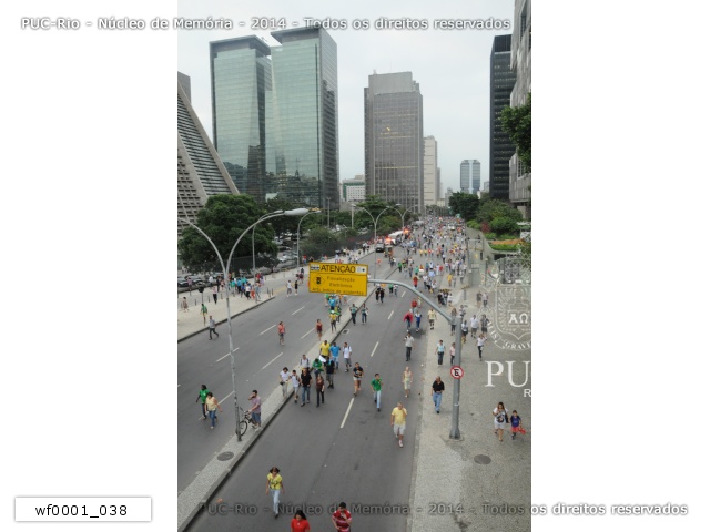 Peregrinos no entorno do prédio da Petrobrás aguardam a chegada do Papa Francisco. |