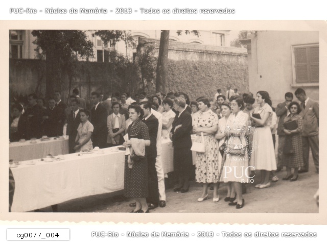 Alunos das Faculdades Católicas nas comemorações do Dia do Reitor. Aparentemente, um café da manhã. |