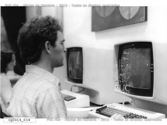 Terminal de computador IBM em sala do Departamento de Engenharia Civil. |