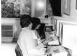 Pessoas utilizam terminais do computador IBM em sala do Departamento de Engenharia Civil. |