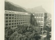 Construção do Edifício da Amizade vista de uma sacada do Edifício Cardeal Leme. Ala Kennedy com a obra bem avançada. Vê-se um jesuíta, de batina, no teto. |