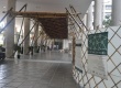 Visão interna dos pilotis do Edifício da Amizade com estruturas de bambu referentes à Mostra 2011. |