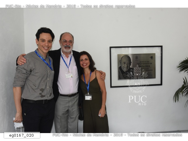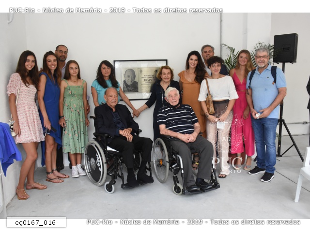 Familiares com o engenheiro Luiz Cyrillo Fernandes presentes na cerimônia de inauguração do novo prédio do Departamento de Biologia. |