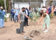Familiar do engenheiro Luiz Cyrillo Fernandes planta muda na parte externa do prédio. |