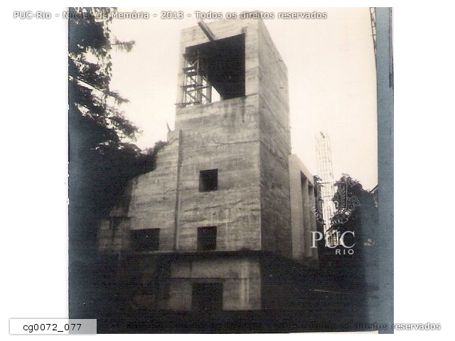 Construção do prédio para a instalação do acelerador Van de Graaff. Ao fundo, o ITUC e o Edifício Cardeal Leme. |