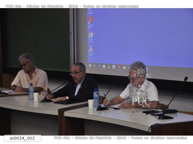 Professor Ney Costa Santos do Departamento de Comunicação Social, o reitor da PUC-Rio, padre Josafá e o diretor do Departamento de Comunicação Social, o professor Leonel Azevedo na homenagem ao professor Miguel. |