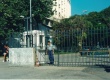 Entrada de carros pelo portão principal, com a guarita do guarda. |
