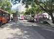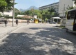 Terminal de ônibus e barraquinhas de alimentos localizados na entrada principal do campus Gávea. |