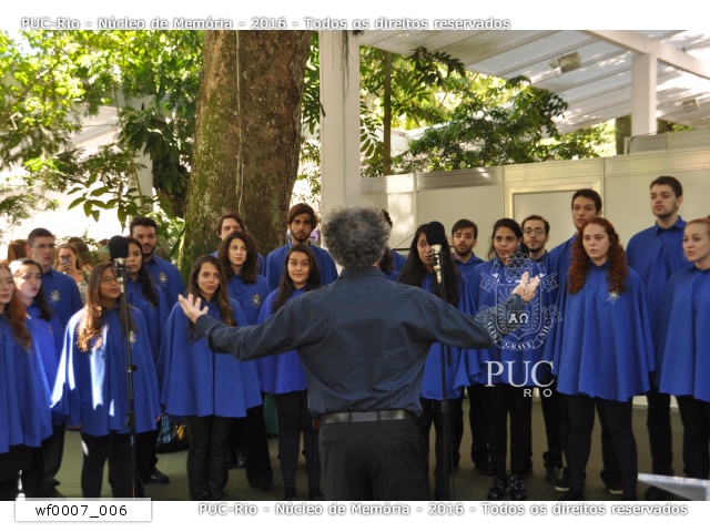 Cerimônia de abertura da XVIII Mostra PUC com a presença do Coral da PUC-Rio. |