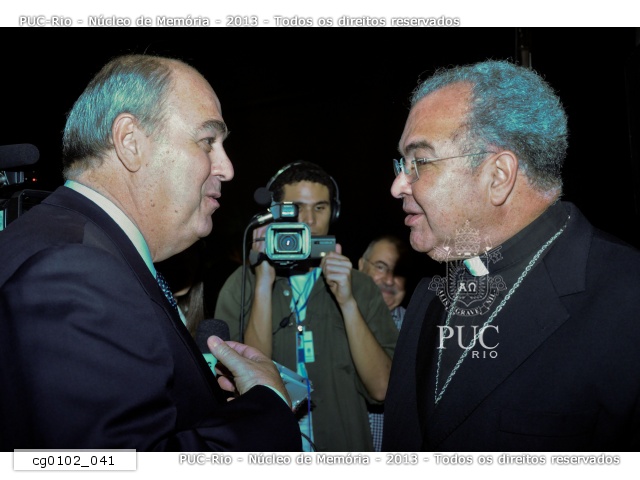 O Reitor Padre Josafá Carlos de Siqueira S.J. é entrevistado após a cerimônia. |