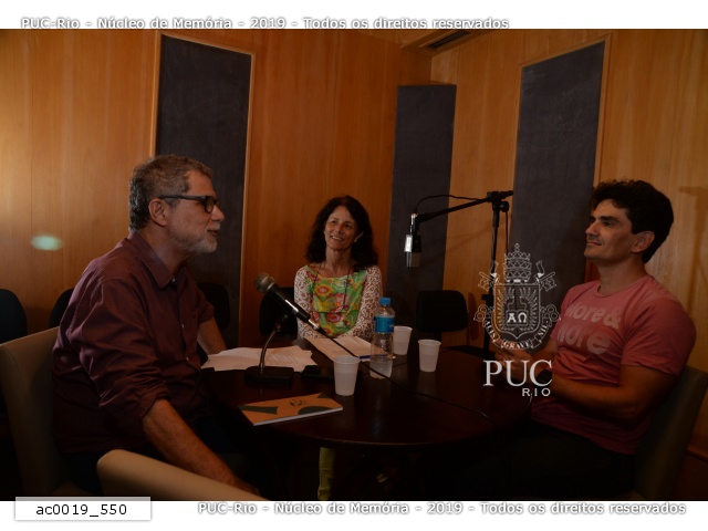 ac0019_550 | 18/11/2019 | Os professores Mauro Silveira (COM), Patrícia Lustoza (CETUC) e Maurício Pamplona gravam podcast para o Departamento de Comunicação da PUC-Rio. |