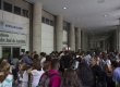 Do lado de fora do Auditório Anchieta, a plateia acompanha a abertura do evento. |