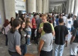 Alunos aguardam nos pilotis. |