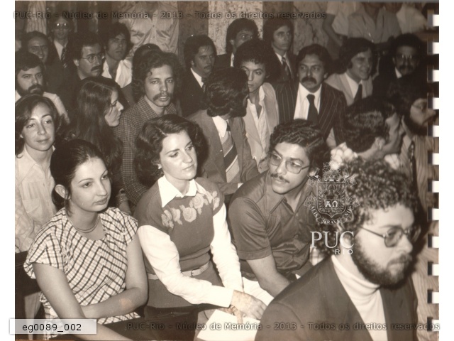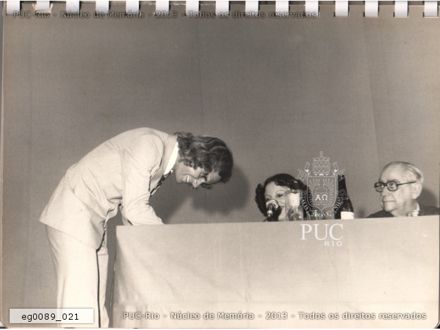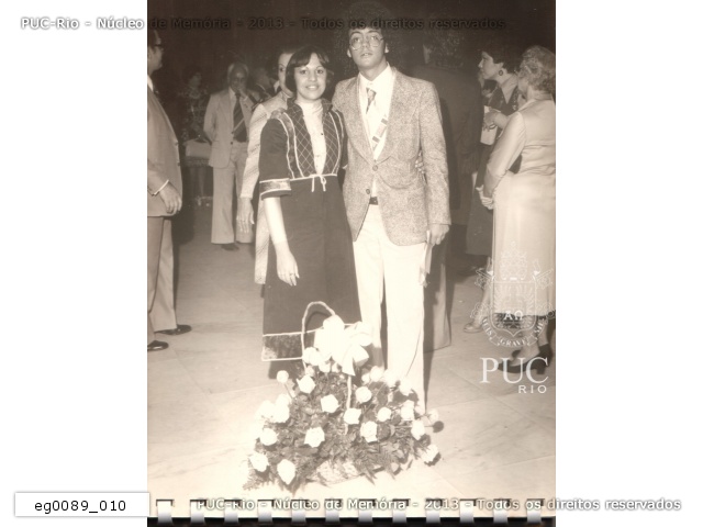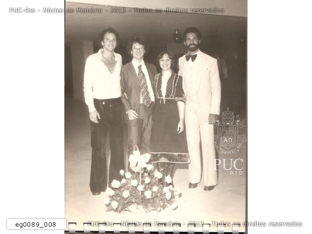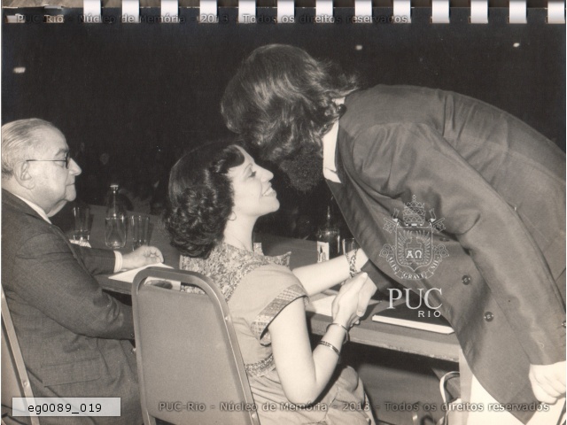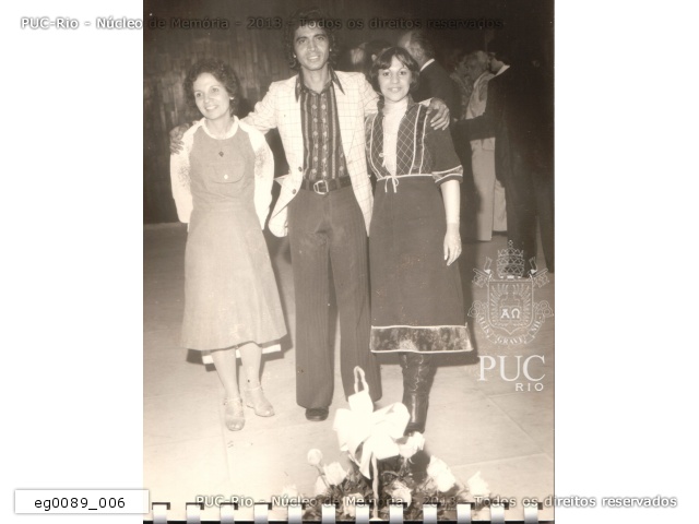 Maria de Fatima de Castro Dinoá, Celso da Cruz Carneiro Ribeiro e o prof. Edgard de Oliveira Fonseca. Formatura de alunos do Centro Técnico Científico. Posteriormente, Celso foi professor e diretor do Departamento de Engenharia Elétrica, se transferiu para a Informática, saiu da PUC e tornou-se professor da UFF. |