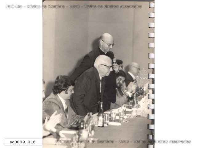 O patrono prof. Alceu Amoroso Lima e o pe. Checon S.J. na colação de grau do curso de Engenharia Eletrônica. |