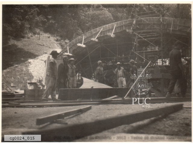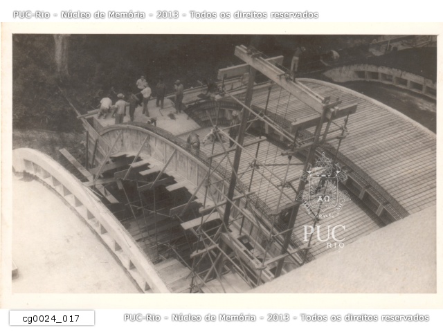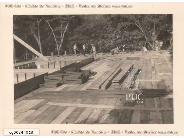 Telhado em obras durante a construção do ITUC (Instituto Tecnológico PUC-Rio). |
