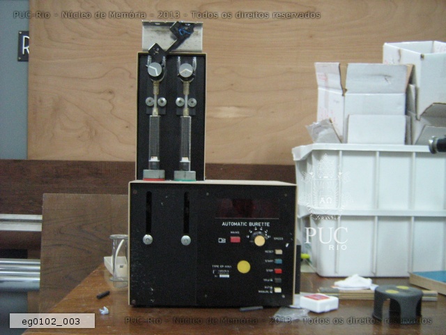Equipamento do Laboratório de Química com inscrições do BNDE e do Fundo de desenvolvimento técnico-científico (FUNTEC). |