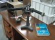 Mesa com livro e equipamentos do Laboratório de Química. |