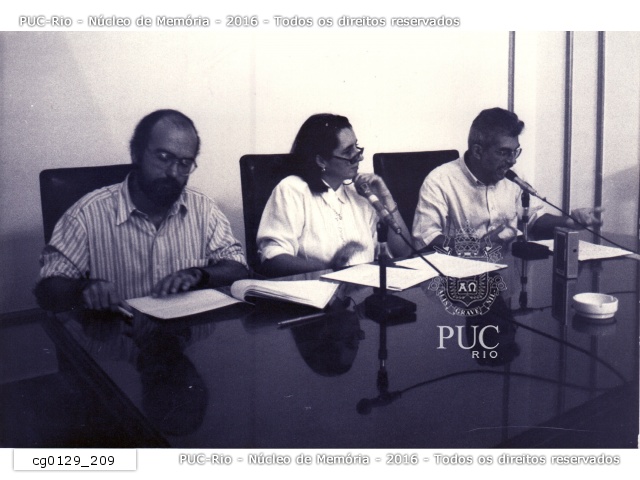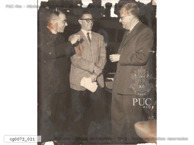 Pe. Roser, pessoa não identificada e o químico Eduardo Penna Franca. |