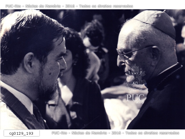Pastoral da PUC-Rio dá ao Cardeal Dom Eugênio de Araújo uma placa comemorativa em homenagem aos seus 25 anos frente à Arquidiocese do Rio de Janeiro. |