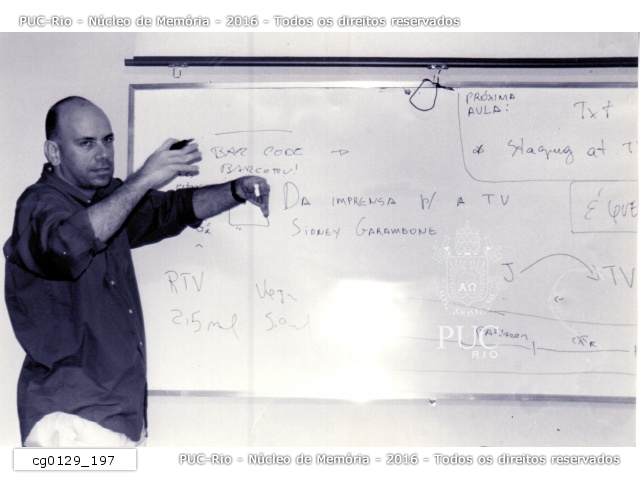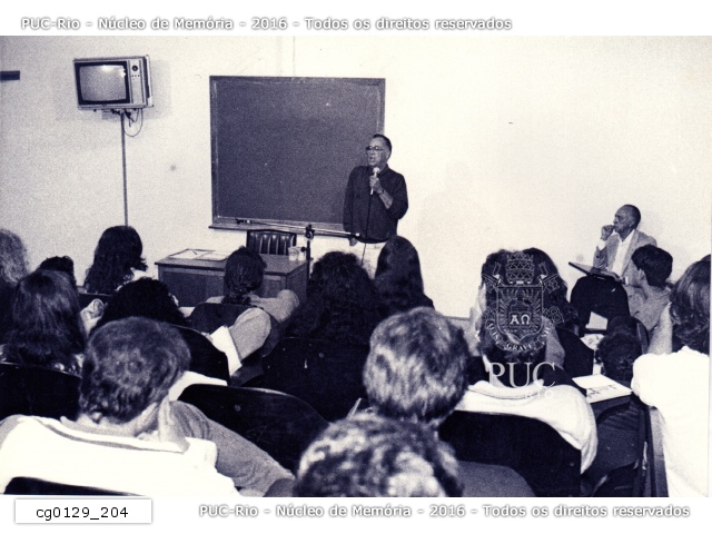Palestra do jornalista Armando Nogueira a qual, provavelmente, fez parte do Seminário sobre 40 anos de Televisão no Brasil, que aconteceu durante uma semana no mês de setembro de 1990. |