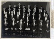 Foto de formatura da turma de Engenharia. Há um pequeno texto datilografado colado na lateral direita da fotografia. |
