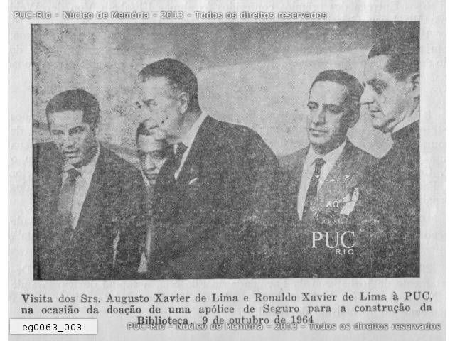 Visita dos Srs. Augusto Xavier de Lima e Ronaldo Xavier de Lima à PUC, na ocasião da doação de uma apólice de Seguro para a construção da Biblioteca. |