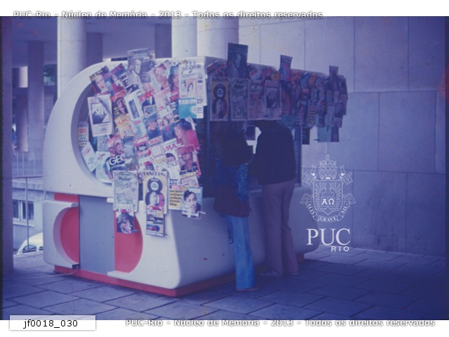 Banca de jornal que se localizava na entrada da Ala Frings. É possível datar a foto pelas capas do Pasquim e da Revista MAD. |