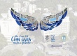 Painel instalado nos pilotis da Ala Frings, com asas referentes ao lema da Universidade, "Com asas nada é pesado", composta por fragmentos de imagens de prédios e do céu da PUC-Rio. |