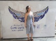 Munick Tavares Figueiredo Cavalcante, funcionária da Divisão de Bibliotecas e Documentação, nas asas colocadas nos pilotis da Ala Frings. |