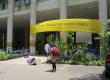 A circulação de alunos, funcionários e professores nos pilotis do Edifício da Amizade. |