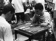 Alunos disputam o campeonato de gamão. |
