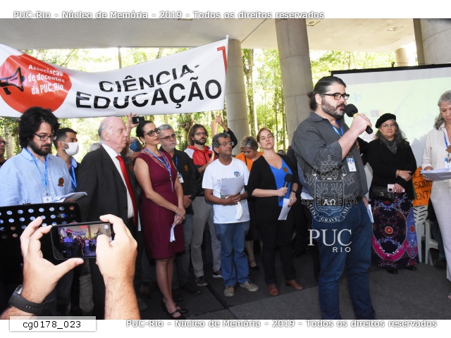 Fala do prof. Marcelo Jasmim (HIS), que esteve presente ao evento de 10/05/1977 nos pilotis da PUC-Rio. |