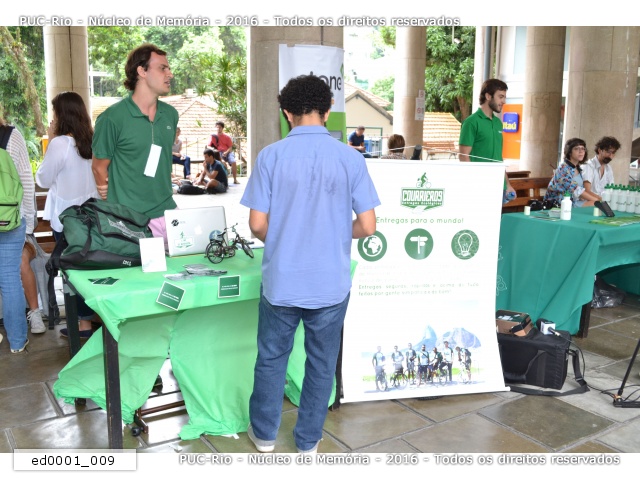 Mesa do expositor Courrieros Entregas Ecológicas. |