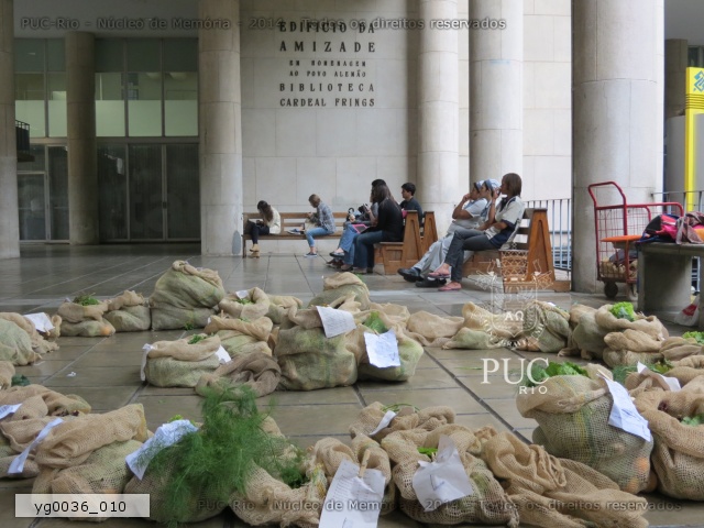 Alimentos cultivados pelos alunos expostos nos pilotis. |