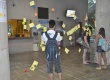 Barracas dos expositores feitas de bambu para exibição e comercialização de roupas, bolsas, bijuterias, objetos de decoração e brinquedos durante a 3ª Semana de Artesanato da PUC-Rio. |