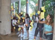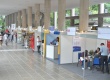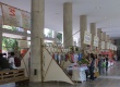 Pilotis da ala Kennedy com as barracas dos expositores feitas de bambu para exibição e comercialização de roupas, bolsas, objetos de decoração e brinquedos durante a 3ª Semana de Artesanato da PUC-Rio. |
