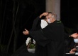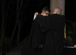 O pe. Josafá Carlos de Siqueira S.J. e o pe. Anderson Antonio Pedroso S.J. se abraçam após a passagem simbólica do cargo de Reitor. |