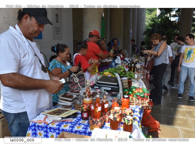 Variedade de produtos disponíveis na feira da reforma agrária. |