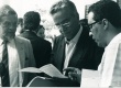 O professor padre Josafá S.J. apresenta o projeto das hortas comunitárias ao então prefeito do Rio de Janeiro Marcello Alencar. |