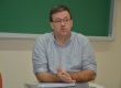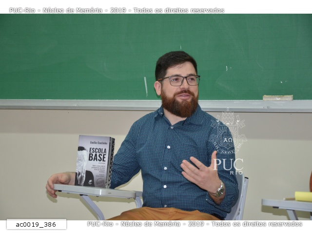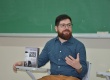 O professor e coordenador do curso de jornalismo, Felipe Gomberg, do Departamento de Comunicação Social, no bate-papo da aula de Introdução ao Jornalismo, do professor Alexandre Caroli, que trouxe o autor de livro-reportagem sobre o caso ‘Escola Base’, como convidado para contar aos alunos sobre o tema. |
